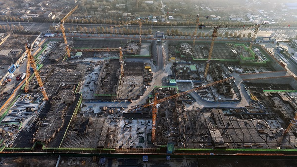 作为承载着居民美好生活愿景的民生工程,北席村城中村改造项目自立项之初,便牵动着全村群众的心。聚焦村民早日住进新家园的期盼,项目部突破传统逐栋施工模式,根据场地条件、资源配置及工序特点,将9栋住宅楼划分为4个批次,采用“分批分区、平行施工、交叉推进”的流水作业模式,实现组内同步、组间有序衔接。施工从西北角的8#楼和东南角的5#楼同步启动,随后沿对角线方向逐步展开其余楼栋作业。通过科学统筹与精准协调,项目部实现了劳动力、机械设备及模板材料等资源的高效周转与充分利用,保障了各工序的紧密衔接。最终,筏板基础工程仅用33天便顺利完工,较原计划提前7天,跑出了项目建设的“加速度”。